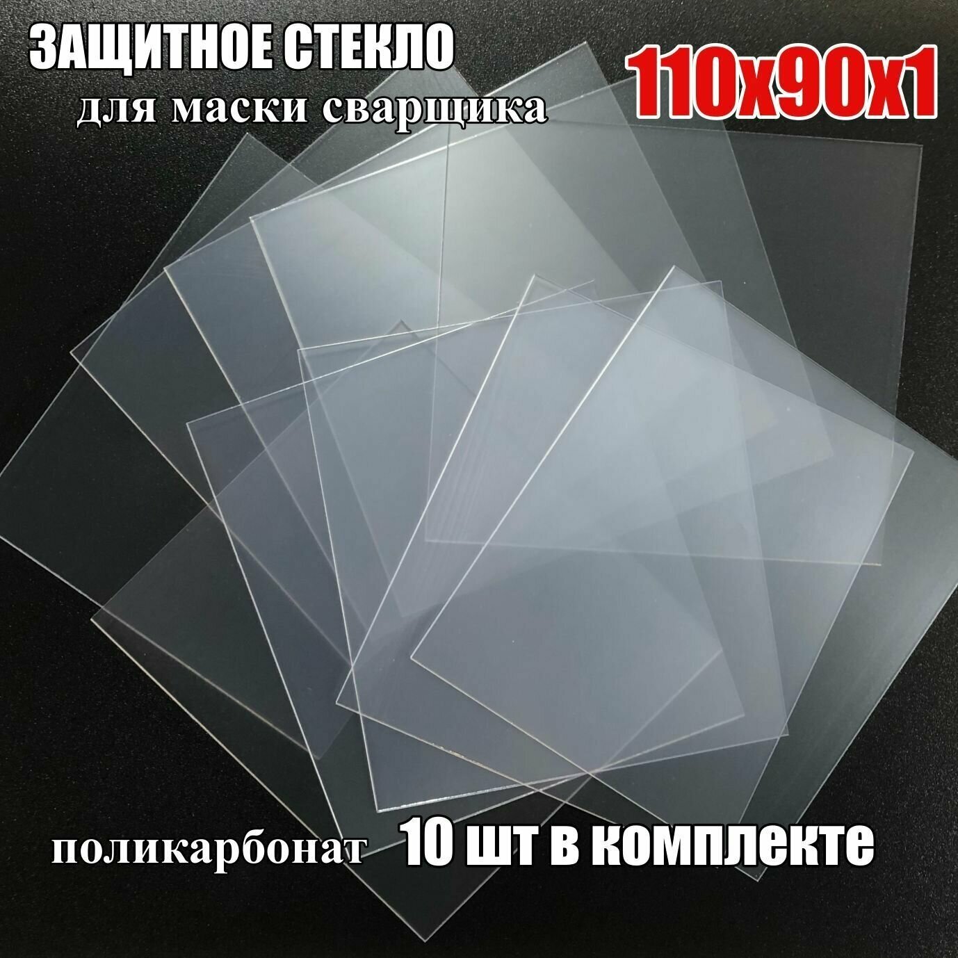 10 цен на Стекло защитное (110х90х1мм) поликарбонат для сварочной маски (10шт)