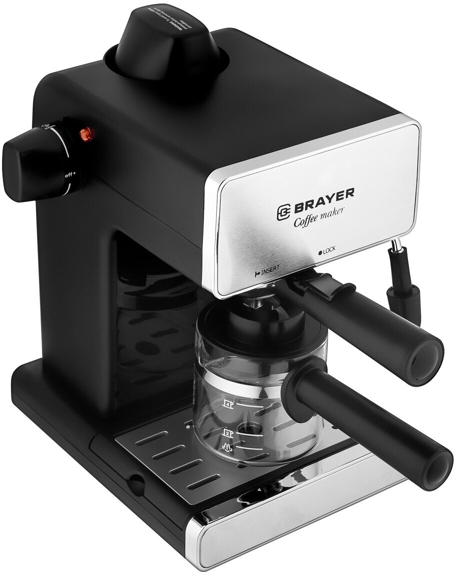 Кофеварка рожковая BRAYER BR1103, 950 Вт, 0,25 л резервуар, 0,24л чаша, давление 4 бар,антикапельная система, черный