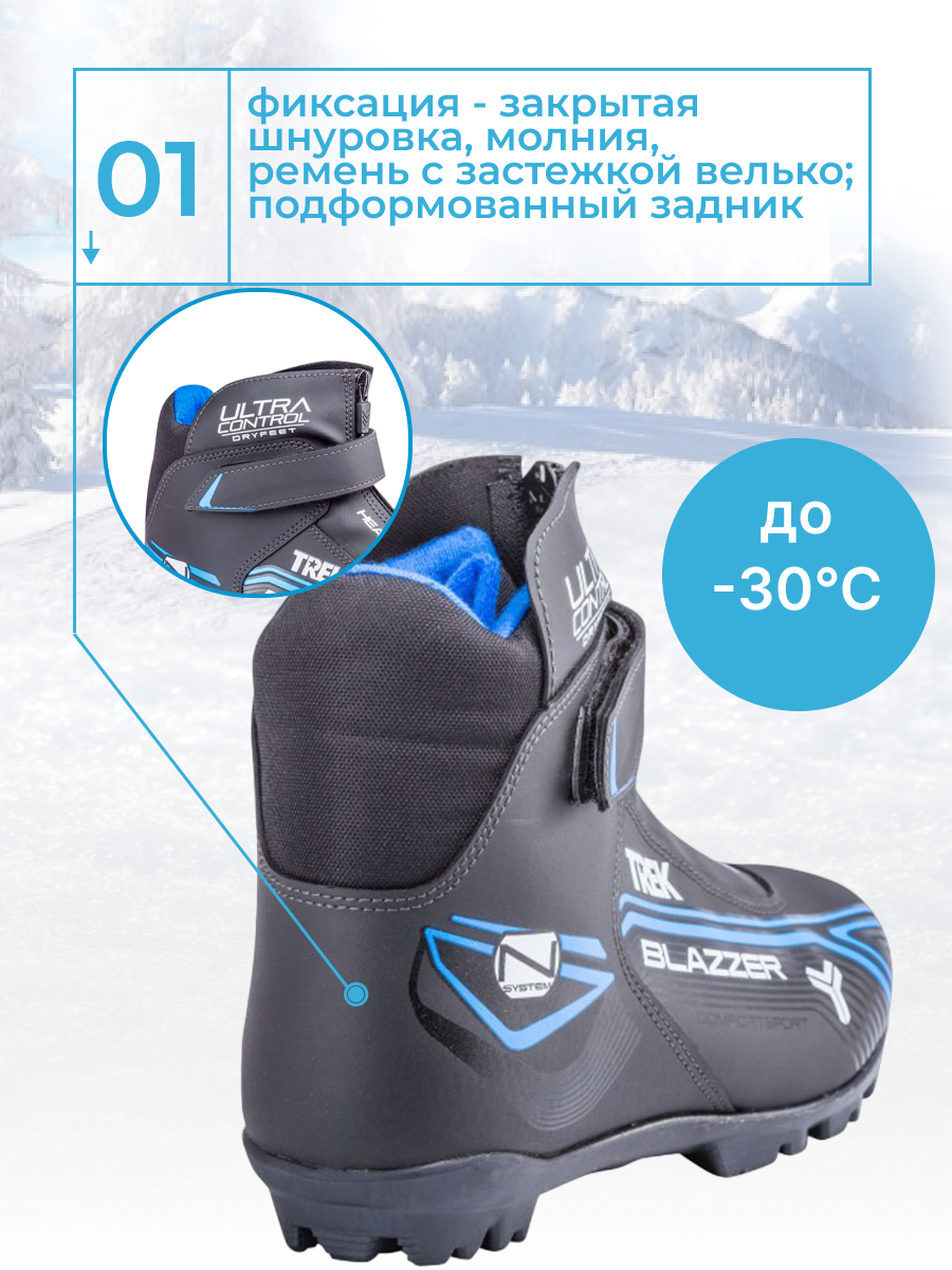 10 цен на Ботинки лыжные NNN TREK BlazzerControl3 черный, логотип синий RU37/EU38/CM23,5