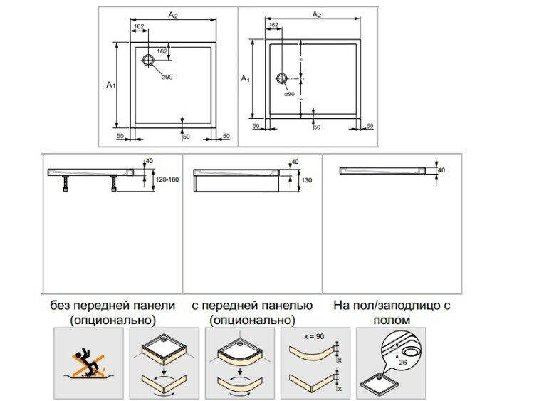 - Душевые поддоны