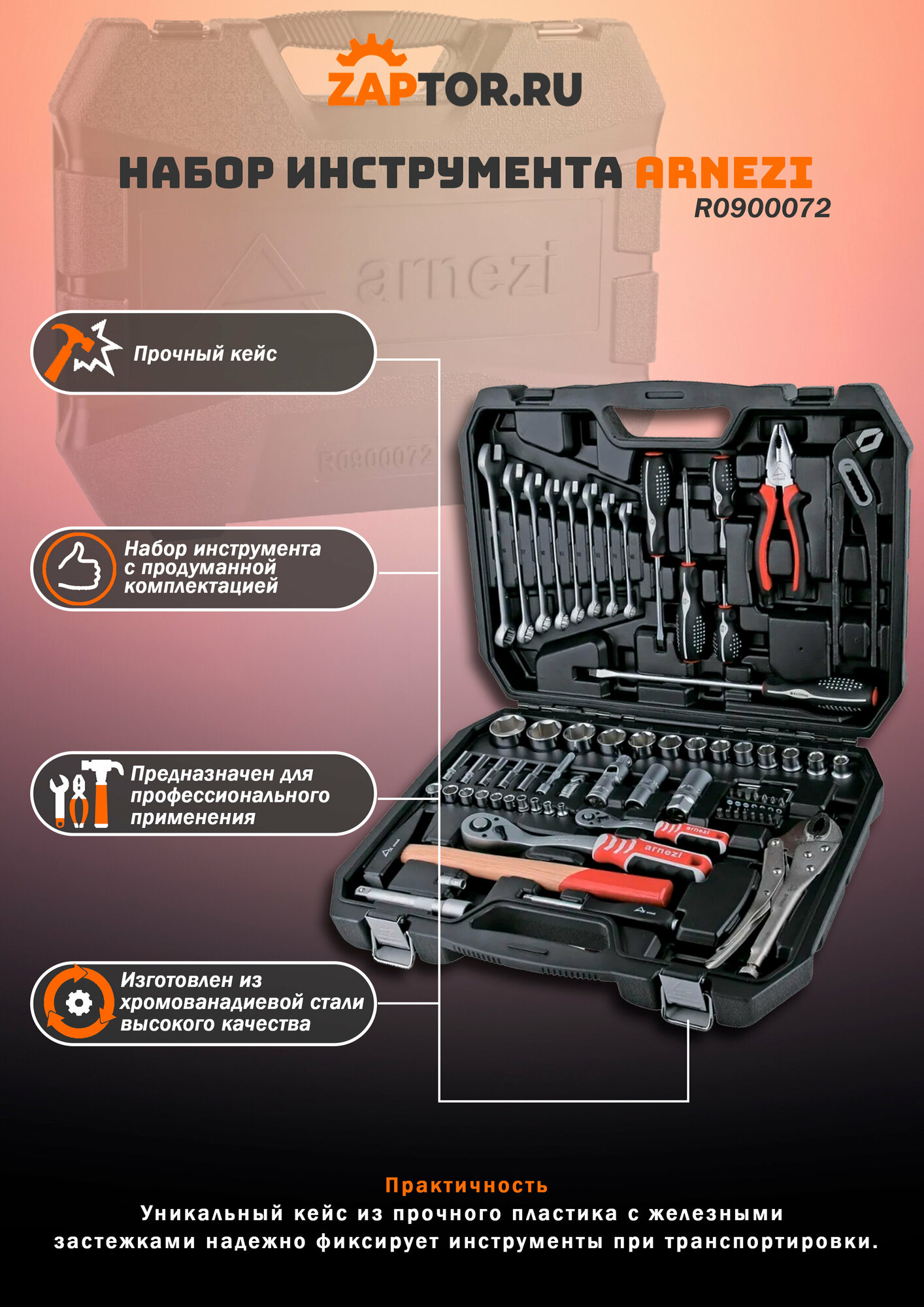 10 цен на Набор Инструментов 72 Пр. 1/4"Dr, 1/2"Dr Arnezi R0900072 ARNEZIR0900072