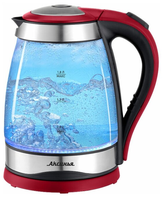 Электрочайник аксинья КС-1004, корпус из жаропр. стекла, черный с красным: 2200Вт, объем 1,8 литра
