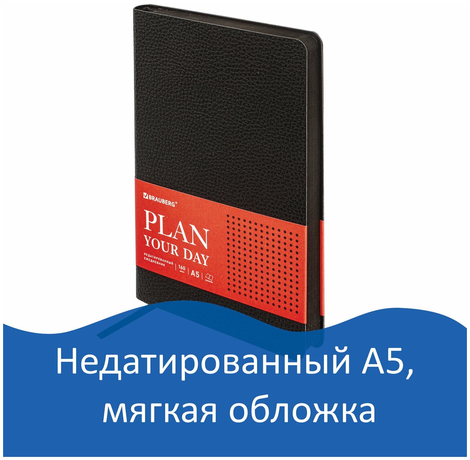 Ежедневник недатированный А5 (138х213 мм) BRAUBERG "Stylish" кожзам гибкий 160 л. черный, 1 шт