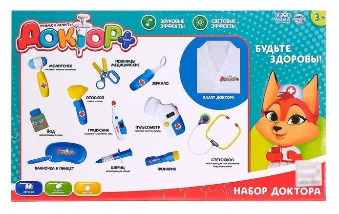 HAPPY VALLEY Набор доктора "ДОКТОР+" 10 предметов, с халатом, звук, свет №SL-1100В 656960 1 379 ₽
