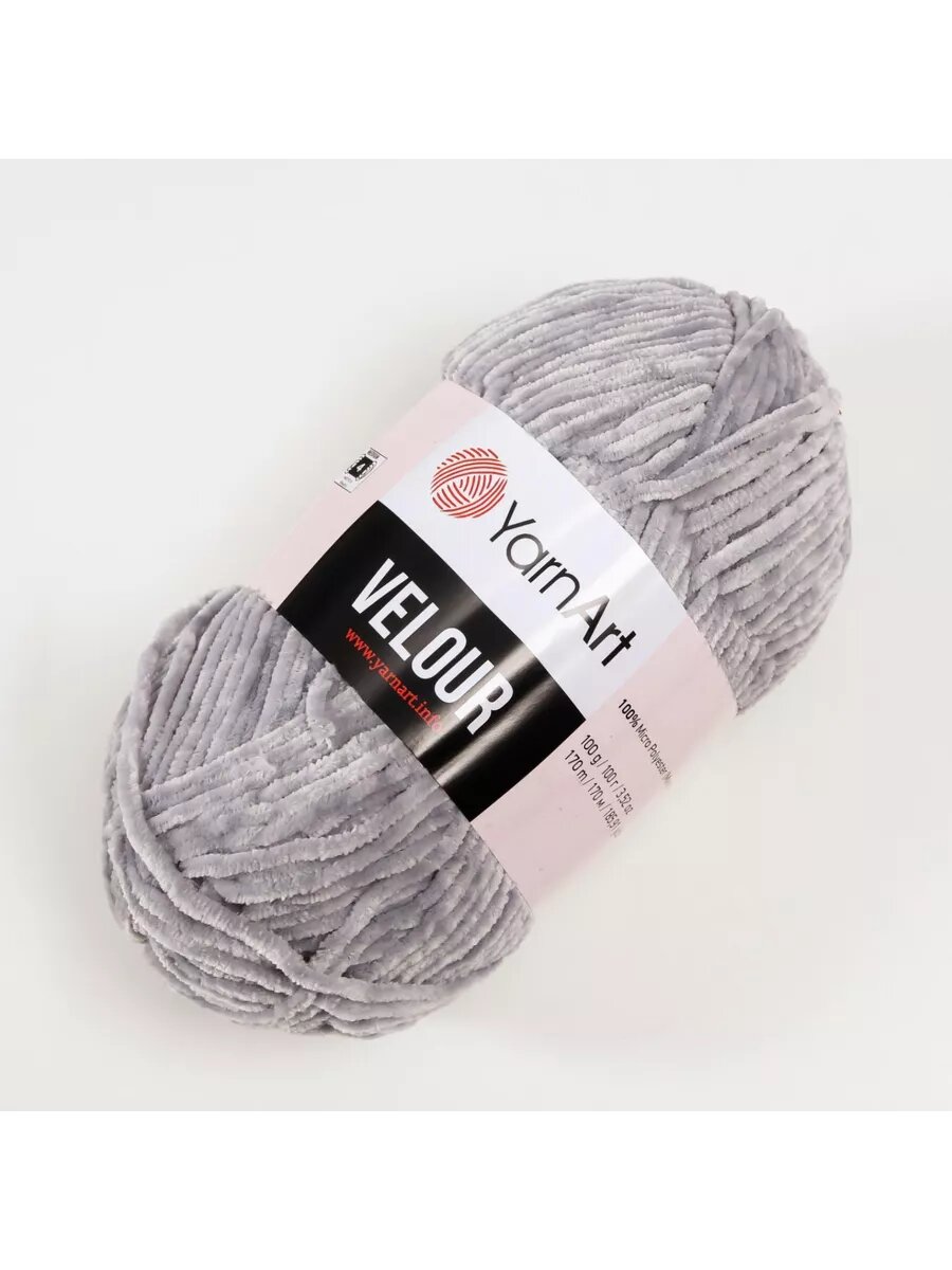 Пряжа YarnArt Velour Ярнарт Велюр Фантазийная велюровая, для игрушек, 858 серый, 100 г, 170 м, микрополиэстер, 1 шт