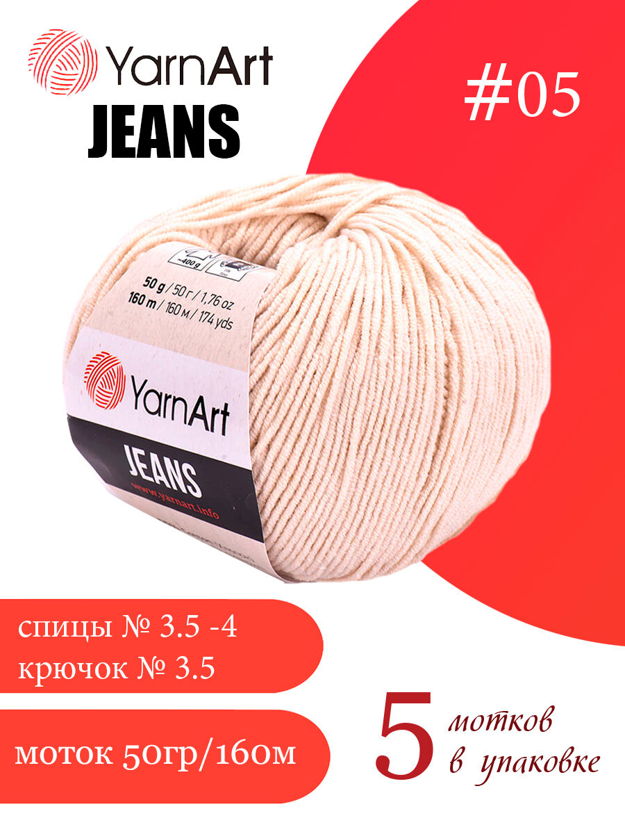 Отзывы на Пряжа YarnArt Jeans Ярнарт джинс Светло-бежевый (05) 5 мотков 50 г/160 м (45% акрил 55 хлопок)