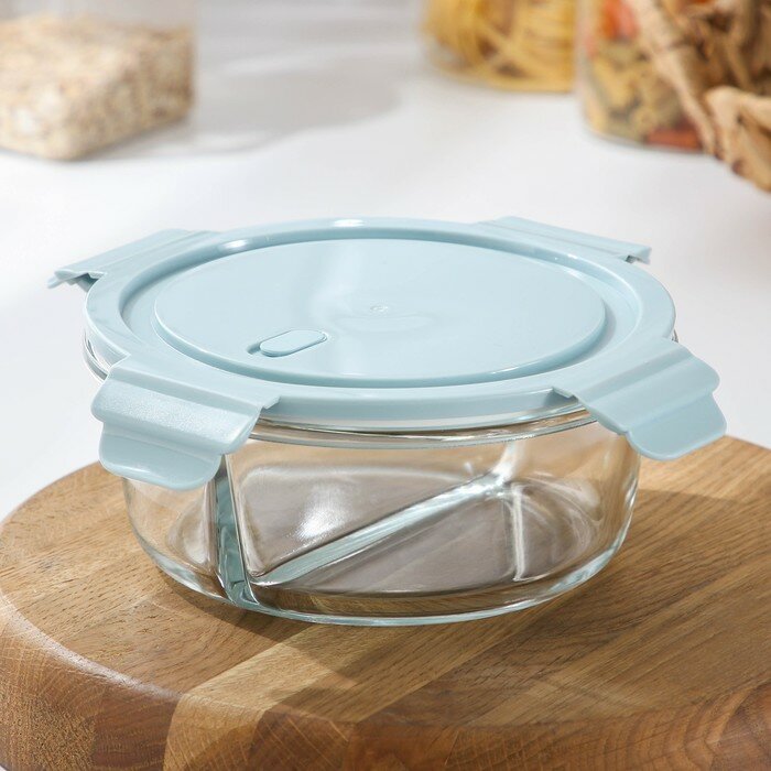 10 цен на Доляна Контейнер двухсекционный из жаропрочного стекла Доляна «Клик», 780 мл, 18×7,2 см, с крышкой, цвет микс