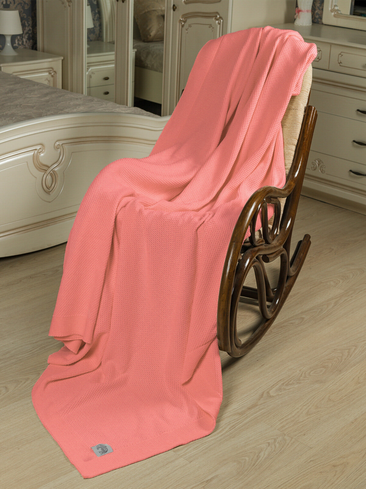 Плед, вязаный, Warm Whiff, коралловый, 180х220, хлопок, покрывало для взрослого, сна, дивана, на кресло, большой, тонкий, натуральный, красивый, нежный, натуральный, гипоалергенный