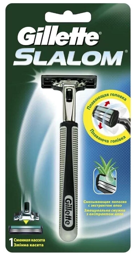 Gillette Slalom Мужская Бритва , 1 кассета, с 2 лезвиями, плавающая головка