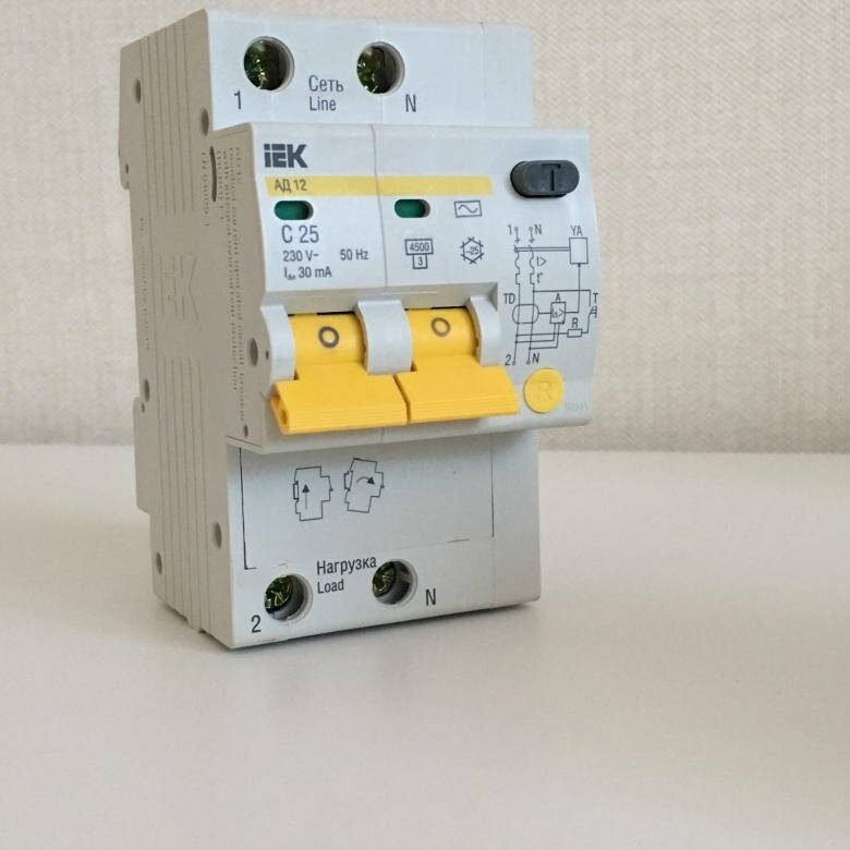 Отзывы на Дифференциальный автоматический выключатель тока IEK АД-12М C, 25A, 30mA, тип A, 4.5kA, 2п, 3.5 модуля MAD12-2-025-C-030