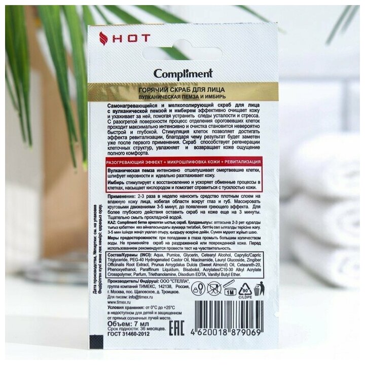 Compliment Скраб для лица горячий вулканическая пемза и имбирь саше, 7 мл 1 шт 62 ₽