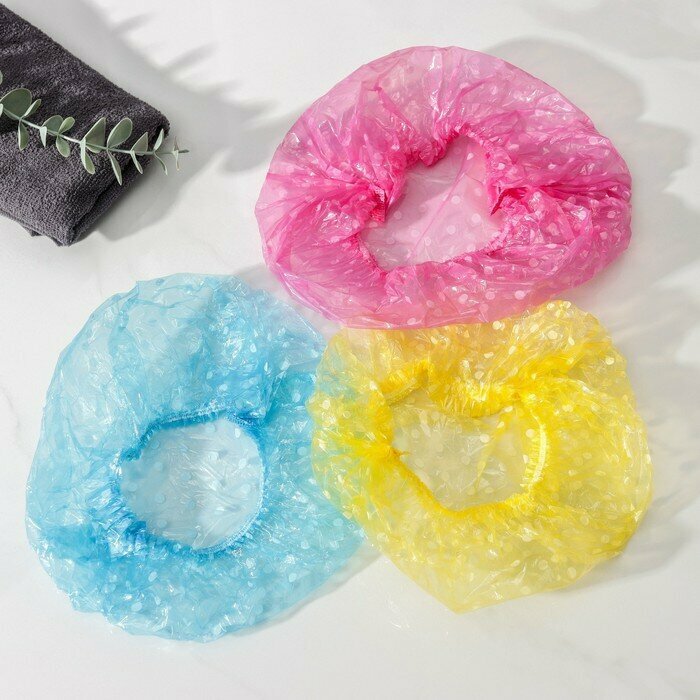 10 цен на Набор шапочек для душа, 3 шт, полиэтилен, цвет микс./В упаковке шт: 10