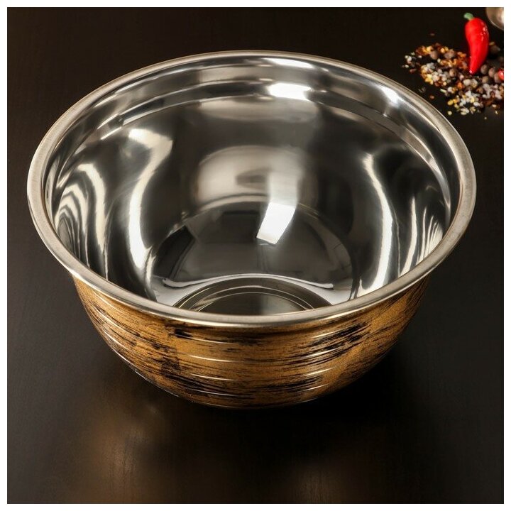 Миска из нержавеющей стали Доляна Wood, d=26 см, цвет древесный
