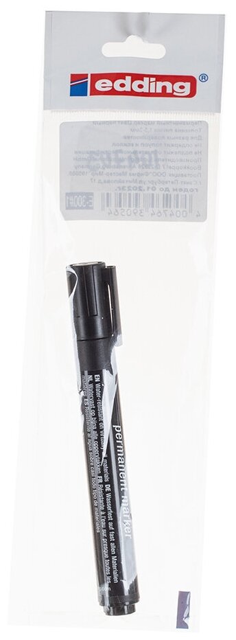 Перманентный маркер Edding, нестираемый, для рисования и письма, 1.5-3 мм, черный, круглый наконечник, 1 шт