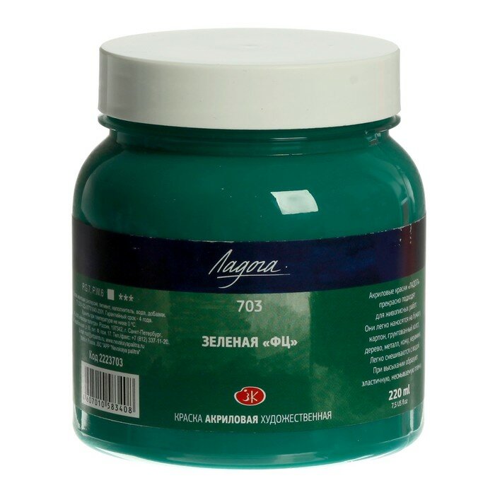 Завод художественных красок «Невская палитра» Краска акриловая художественная в банке 220 мл, ЗХК "Ладога", зелёная "ФЦ", 2223703 информация: