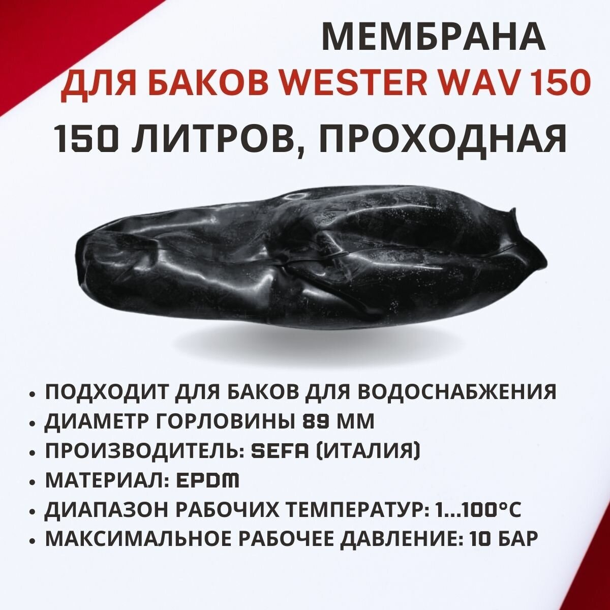 Мембрана для гидроаккумулятора Wester WAV 150, проходная (membrGAWAV150) информация: