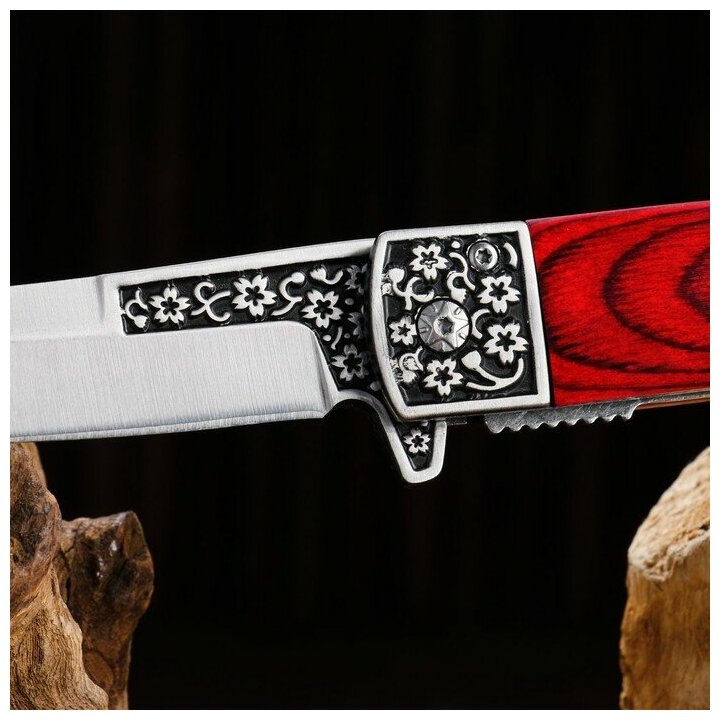 Market-Space Нож складной Танто полуавтоматический, ручка дерево 22,8см, клинок 9,5см