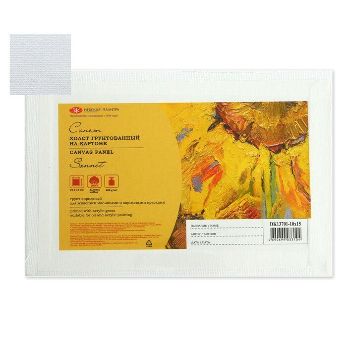Холст на картоне хлопок 100% ЗХК "Сонет", 10 х 15 см, 3 мм, акриловый грунт, мелкое зерно информация: