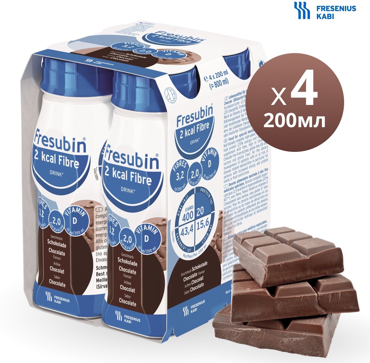 FRESENIUS KABI Фрезубин напиток 2 ккал с пищевыми волокнами готовое к употреблению 200 мл шоколад 4 шт.