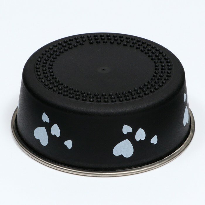 Миска металлическая в пластиковом корпусе "Сердечки", 290 мл, чёрная информация: