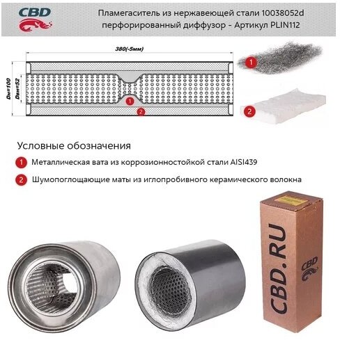 Пламегаситель 10038052D С Перфорированным Диффузором, Из Нерж.стали. CBD арт. PLIN112 информация: