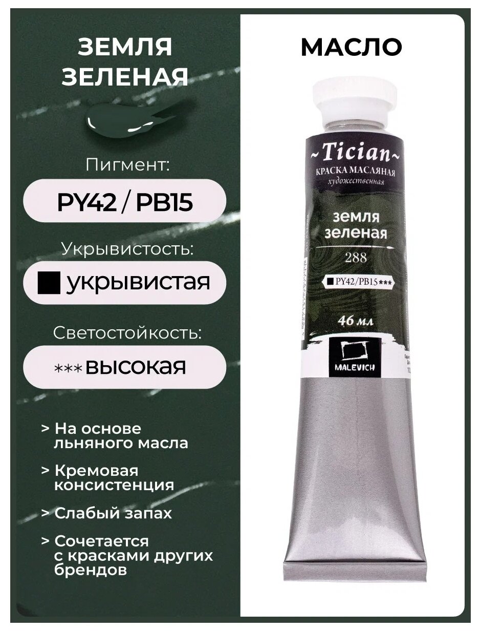 Масляные Малевичъ Масляная краска Tician малевичъ, туба 46мл, 288 Земля зеленая информация: