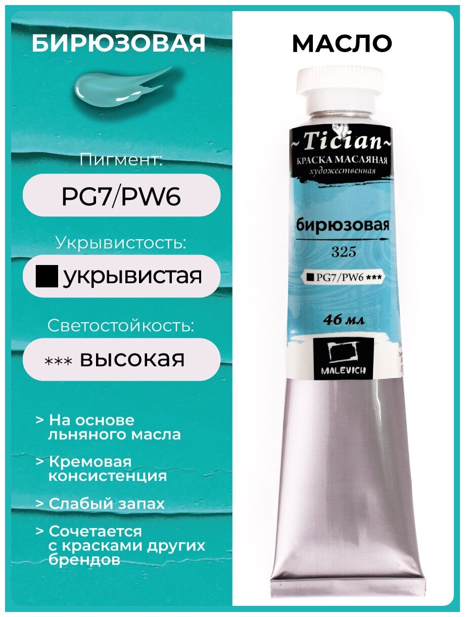 Масляные Малевичъ Масляная краска Tician малевичъ, туба 46мл, 325 Бирюзовая информация: