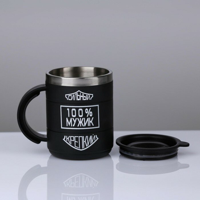Термокружка, серия: Поход, "Мастер К. 100 % мужик" 450 мл, сохраняет тепло 2 ч, 10.5 х 8.5 см 5156 информация: