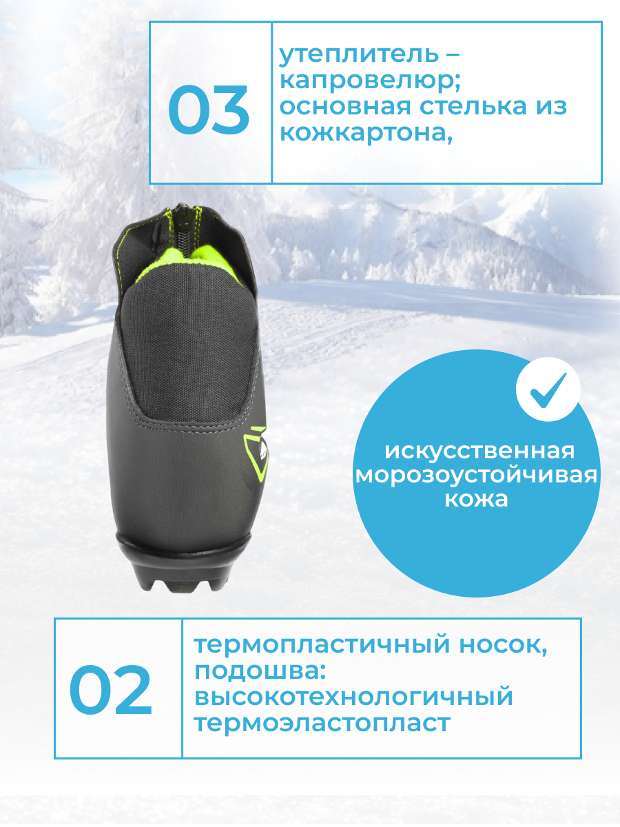 Ботинки лыжные NNN TREK Blazzer Control 1 черные, логотип лайм неон размер RU37 EU38 CM23,5