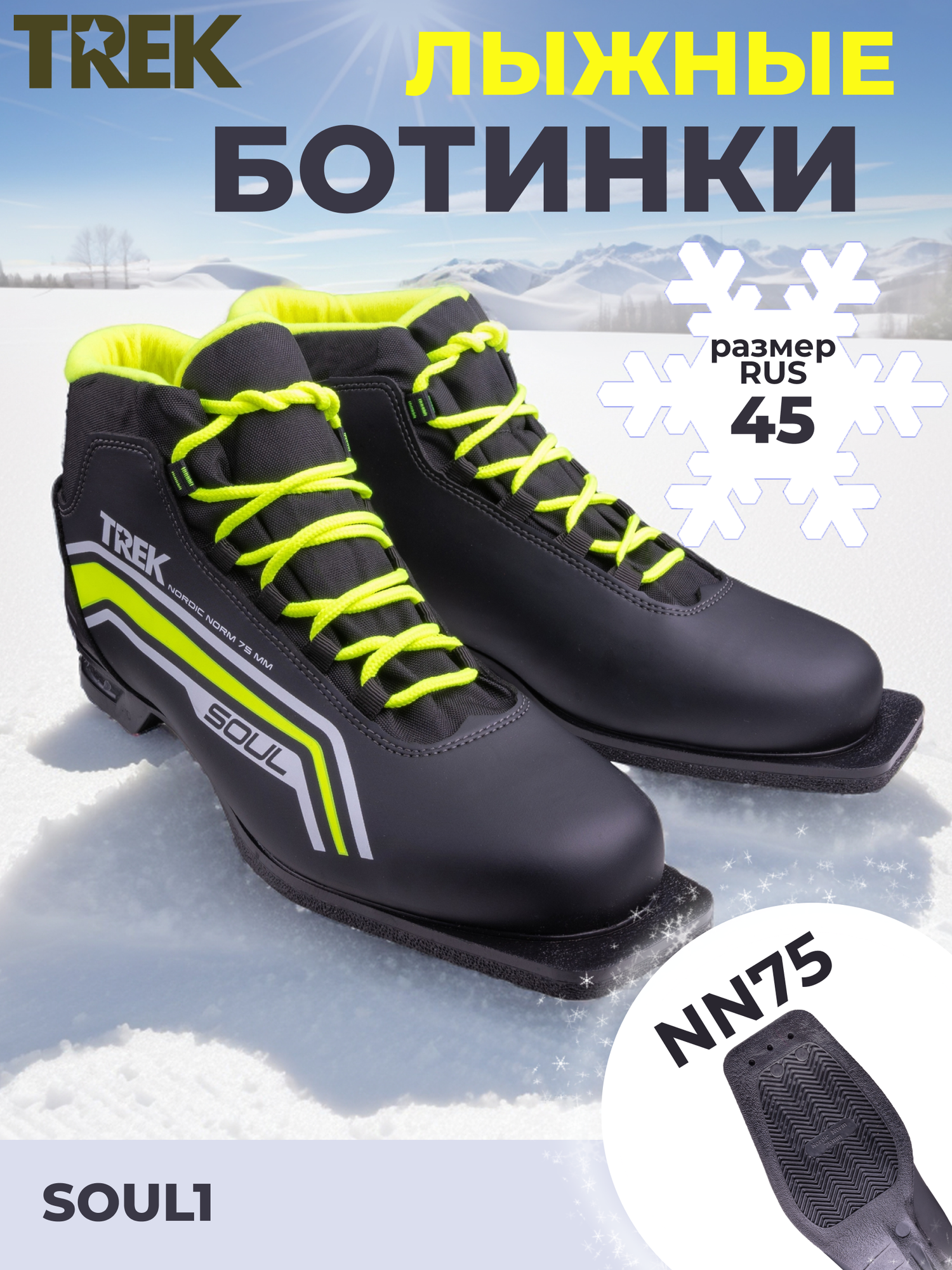 Ботинки лыжные TREK Soul 1 NN75 ИК (черный, лайм неон) (р.46)