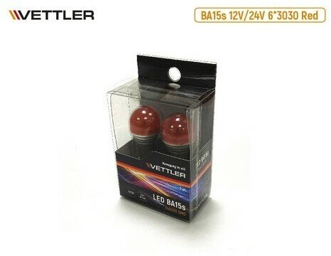 VETTLER Лампа светодиодная 12/24 V S25-6 SMD (3030) красная стоп-сигнал, повторитель 1 конт (к-т 2шт) (VETTLER) информация: