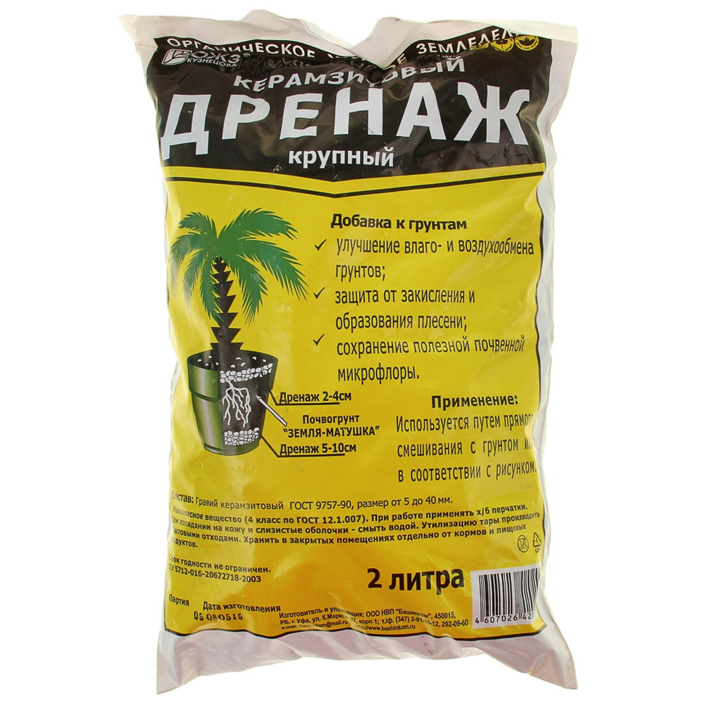 Дренаж керамзитовый крупный 2 л информация: