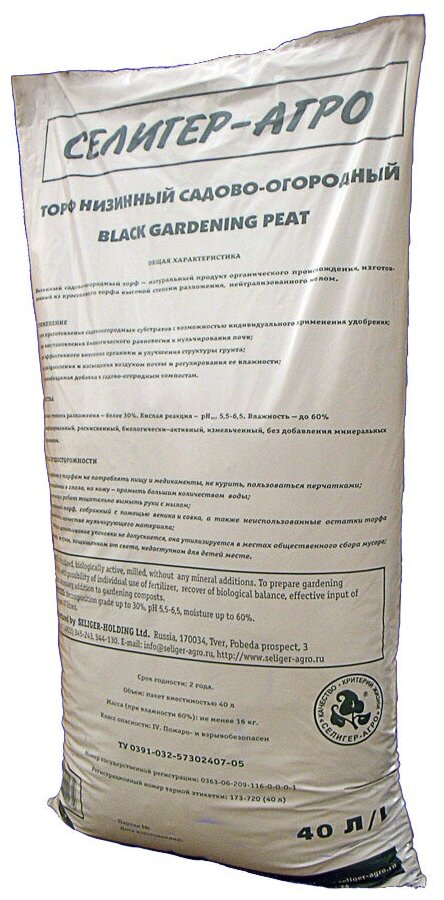 Торф Низинный Садово-огородный Селигер Агро, 40 л информация: