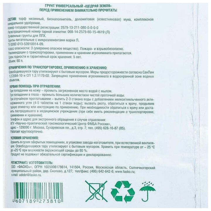 10 цен на Грунт Щедрая Земля универсальный, 60л