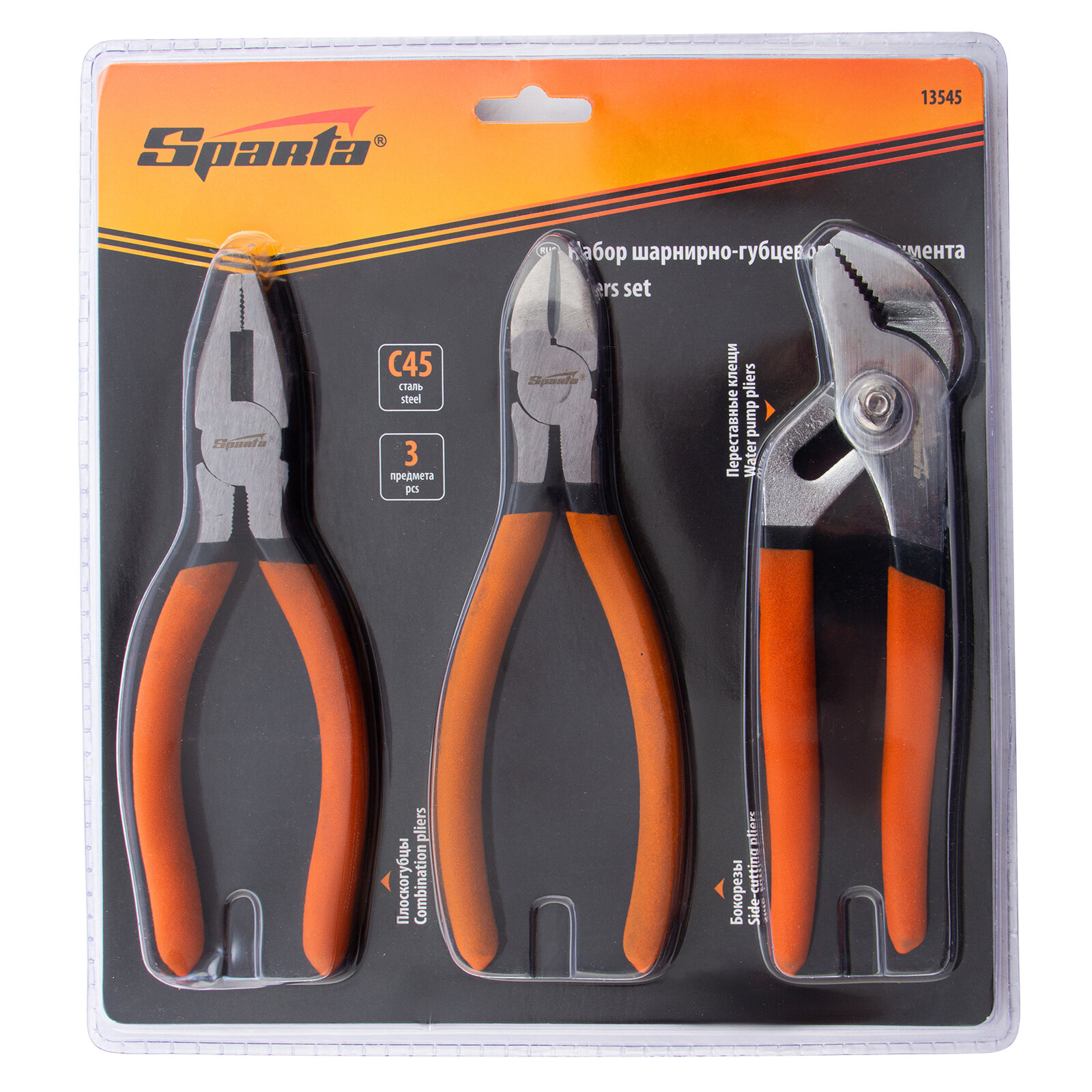 Набор шарнирно-губцевого инструмента Sparta 13545, 3 предм., оранжевый