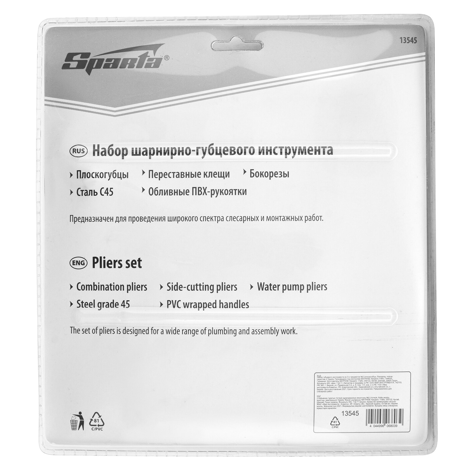 SPARTA 13545 Набор инструментов губцевых 3 предмета SPARTA