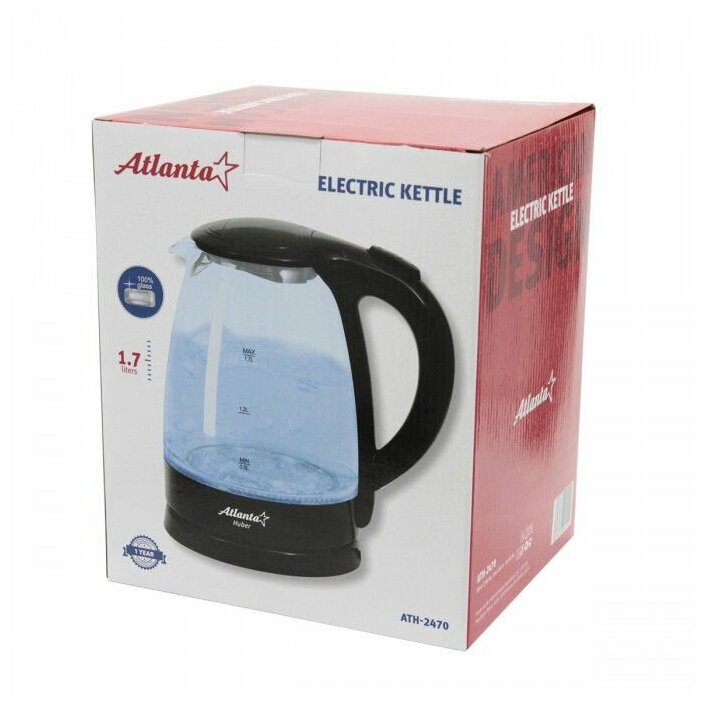 Чайник электрический Atlanta ATH-2470 (black) стеклянный ATH-2470 (black) .