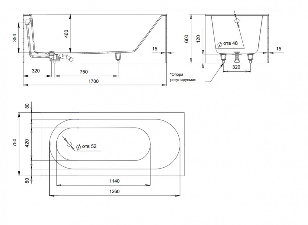 Ванна Gamma 140х70 см, акриловая, на каркасе, экран к ванне Gamma 140