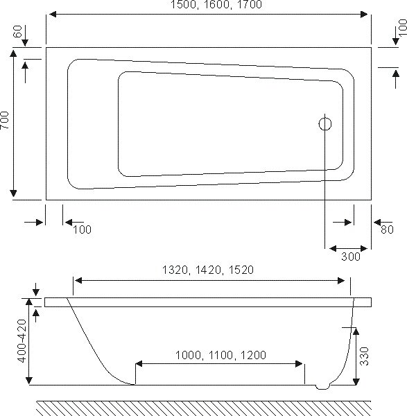 Ванна Gamma 140х70 см, акриловая, на каркасе, экран к ванне Gamma 140