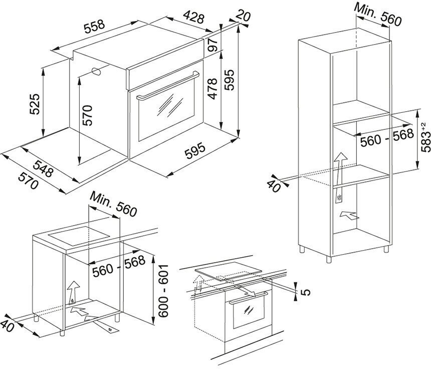 Духовой шкаф встраиваемый LEX EDM 077 C IV, 60 см, с конвекцией, механические ручки, объем 60 л, аналоговый таймер, телескопические направляющие.