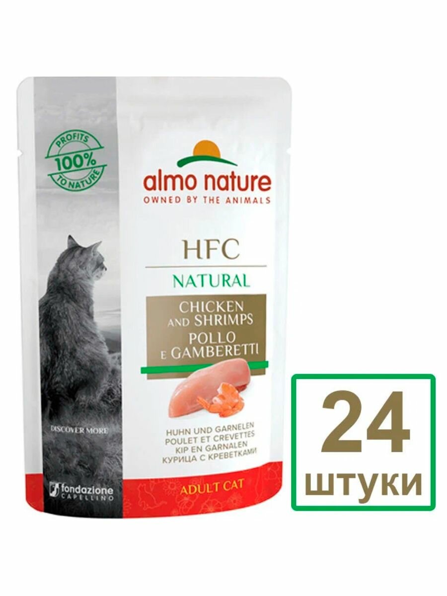 ALMO NATURE CAT HFC NATURAL для взрослых кошек с курицей и креветками (55 гр х 24 шт)