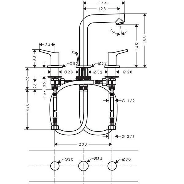 Смеситель для умывальника Hansgrohe Talis S, арт. 72130000, неповоротный излив, с донным клапаном, на 3 отверстия 24 898 ₽