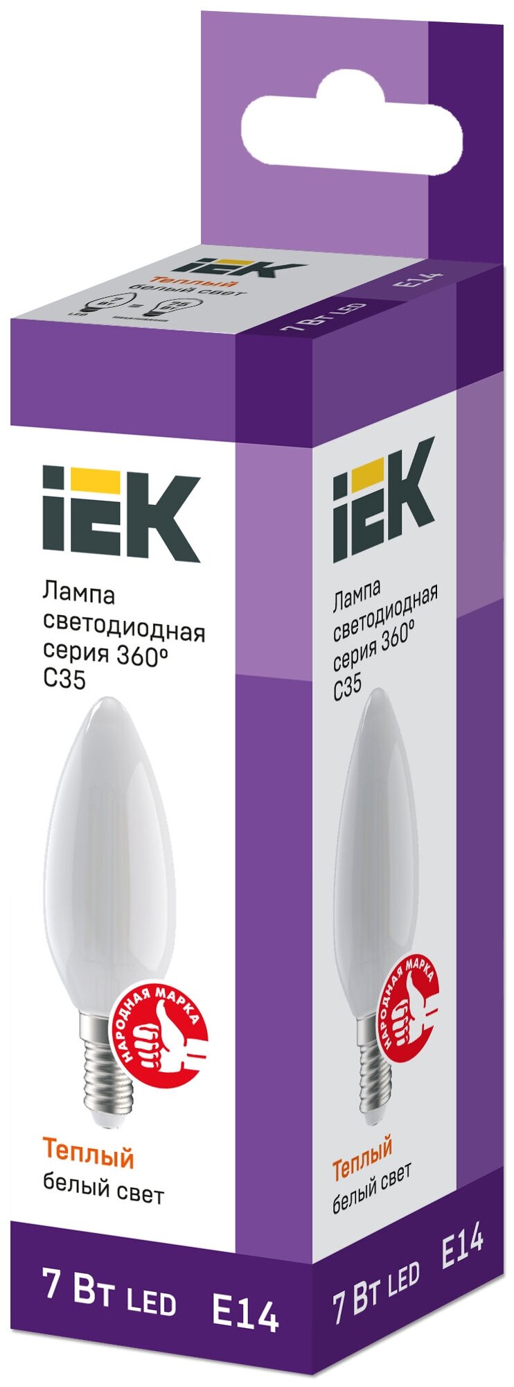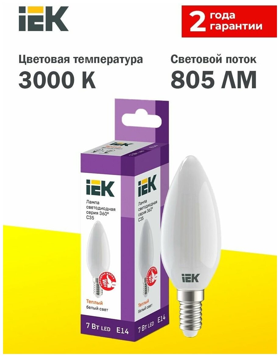 Отзывы на Светодиодная лампа LED C35 свеча матов. 7Вт 230В 3000К E14 серия 360° IEK