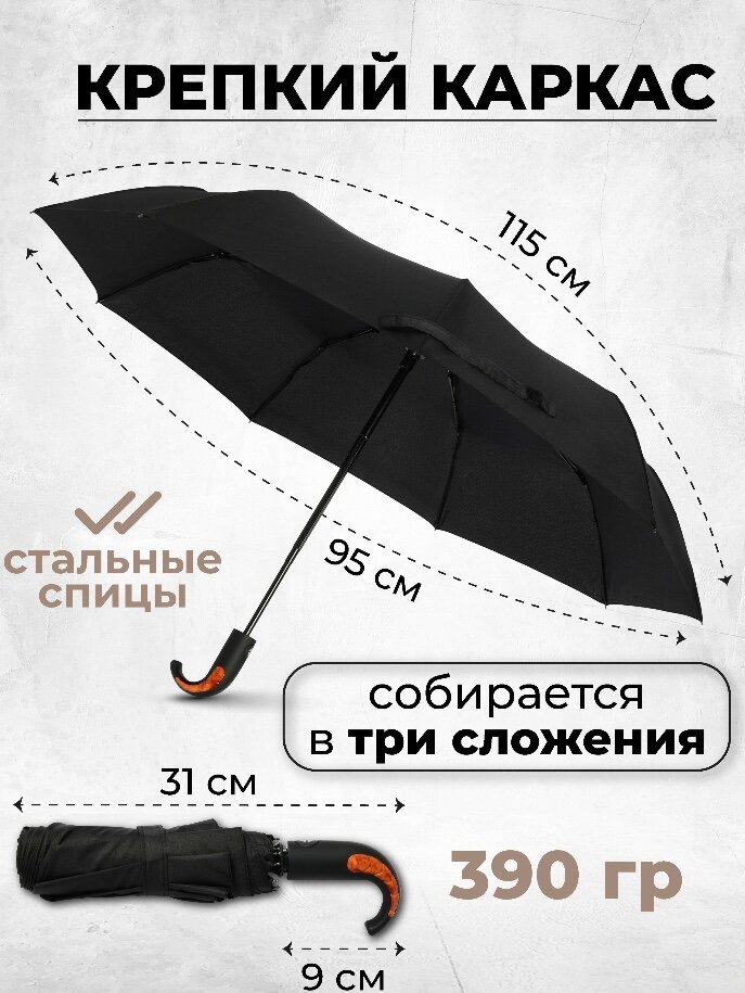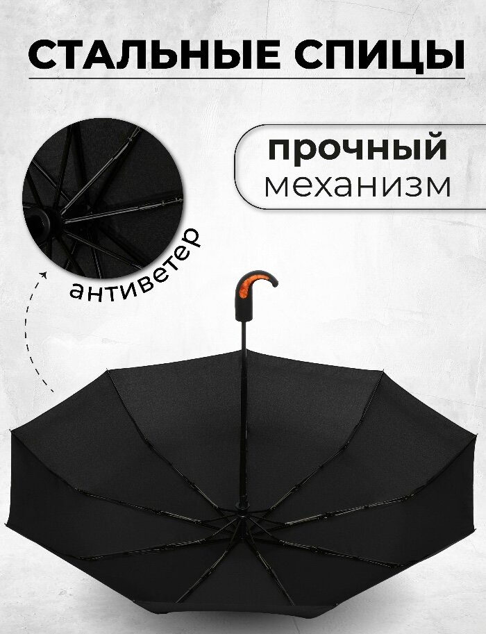 Отзывы на Смарт-зонт СмеХторг, полуавтомат, 3 сложения, купол 105 см., деревянная ручка, ручка натуральная кожа, обратное сложение, система «антиветер»