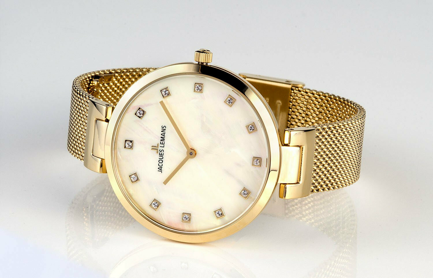 Наручные часы Jacques Lemans 1-2001D, женские кварцевые классические часы Жак Леман с кристаллами Swarovski на стальном браслете миланского плетения