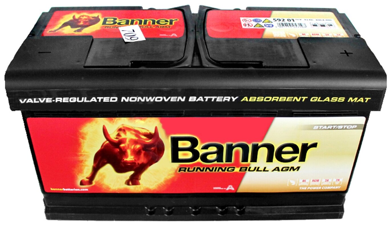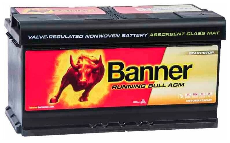 10 цен на Аккумулятор (АКБ) BANNER AGM RUNNING BULL (592 01) 92Ah ОП 850A для легкового автомобиля (авто) 353/175/190 6ст-92 92 Ач (Баннер) АГМ