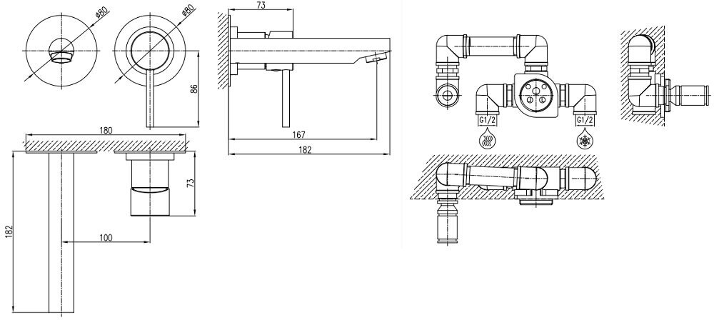 Rav Slezak Seina Смеситель для раковины включая тело скрытого монтажа (SE934)