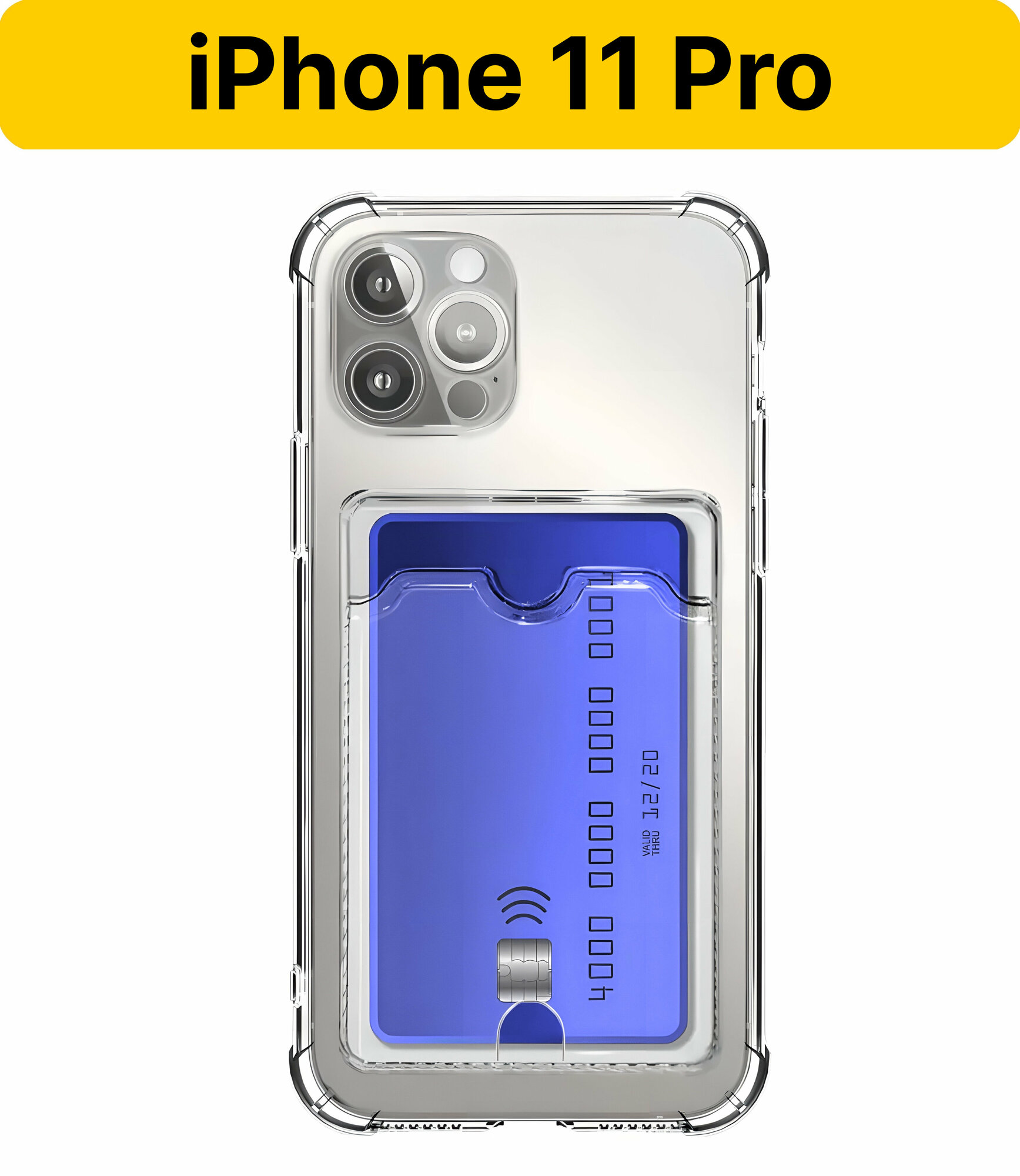 ADV GROUP / Прозрачный чехол на iPhone 11 Pro c карманом для карт, противоударный с защитой камеры информация: