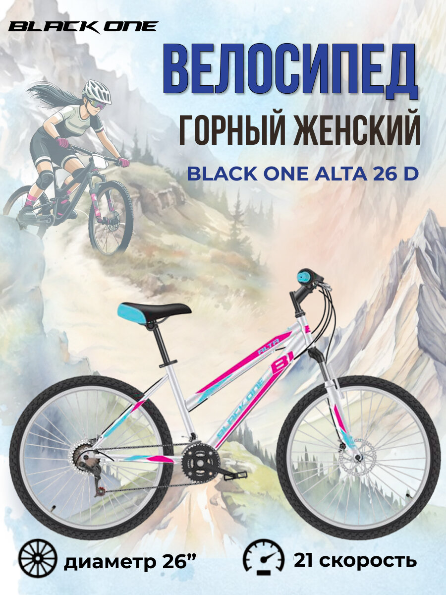 10 цен на Женский горный велосипед с колесами 26" Black One Alta 26 D белый / розовый/ голубой рама 16", 21 скорость