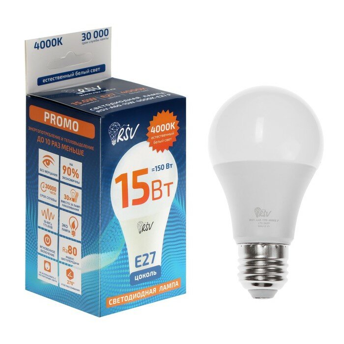 10 цен на Светодиодная лампа RSV RSV-A60-15W-4000K-E27 P 16101208